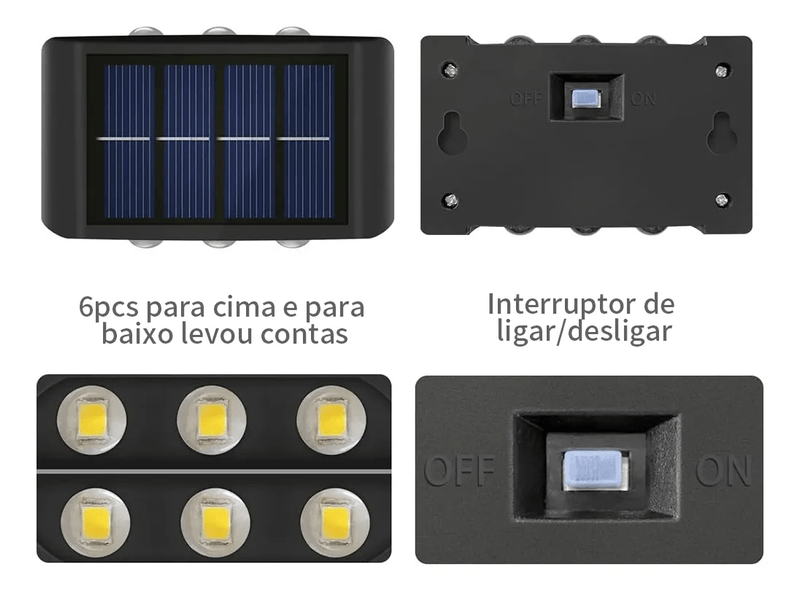 Arandela de Parede Solar Preta 1W Sensor Automático À Prova d’Água IP65