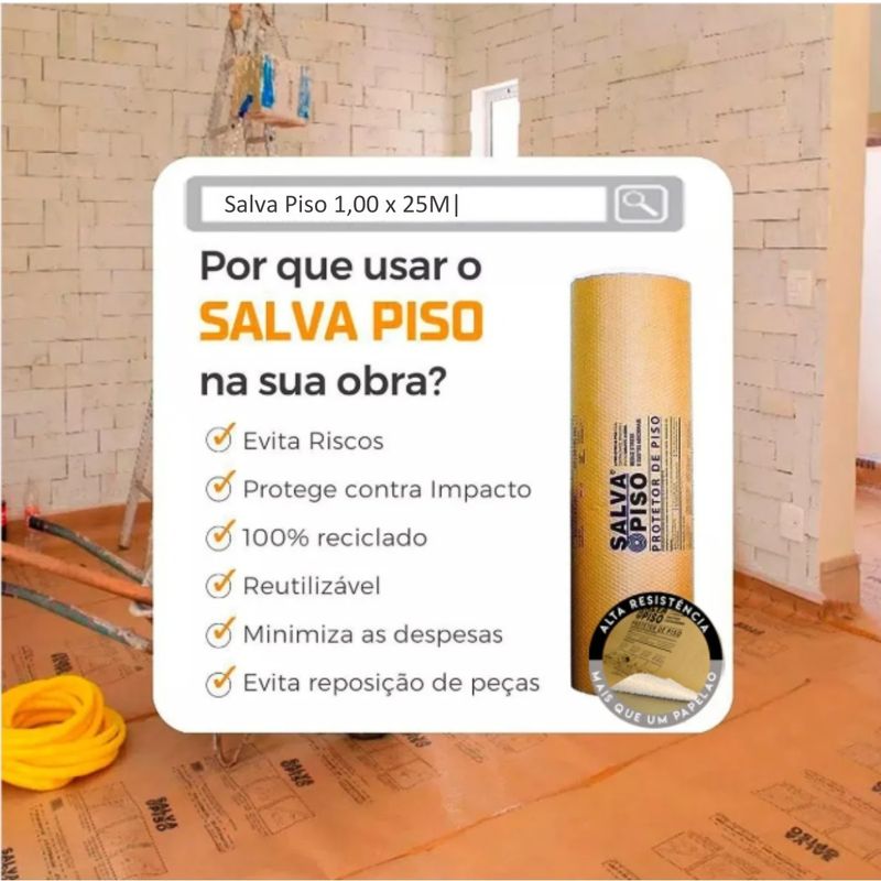 Rolo Salva Piso 1x25m Protetor de Piso para Obra e Reforma Impermeável Eficiente